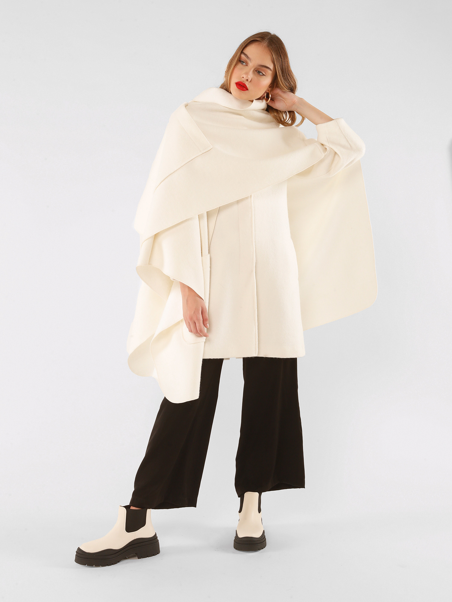 Esta prenda de Rotunda está a medio camino entre un tapado y un poncho, pero si hay algo que está claro es que es muy mamá. Es perfecto para el otoño, donde se puede trabajar en capas según la temperatura del día.