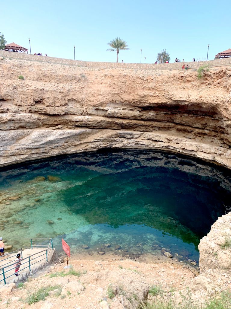 De vuelta a Muscat, se puede pasar por Wadi Shab, un lugar de trekking que tiene unas piscinas naturales espectaculares, y/o por Bimmah Hole, que es un hoyo natural contra un fondo montañoso con aguas cristalinas, que hace una especie de piscina natural muy linda. En los dos lugares hay bastante gente, por lo que recomendamos que los paseos los hagan temprano y con tiempo.