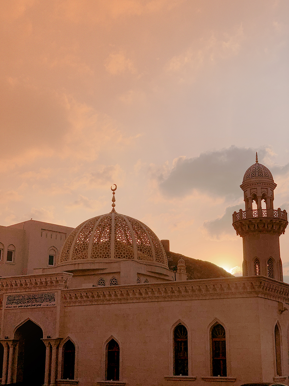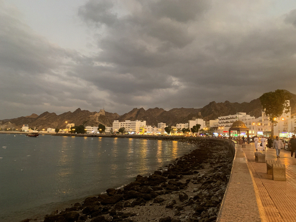 Al llegar a Muscat, la capital y ciudad más grande de Omán, nos sorprendió descubrir que, a diferencia de ciudades como Dubai, su patrimonio cultural está conservado enteramente, manteniendo una arquitectura y personalidad muy originales y hermosas. Muscat nos dejó la impresión de ser una ciudad mágica, con una rambla divina con cafecitos pintorescos, junto a la feria más grande de la ciudad y magníficos cruceros. Es realmente una ciudad llena de encanto, amplia, y enteramente de color crema; podríamos decir que parecida a Grecia, pero con arquitectura árabe.