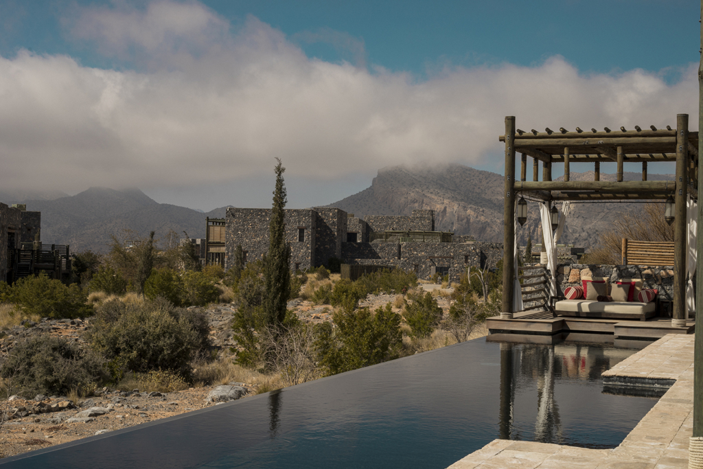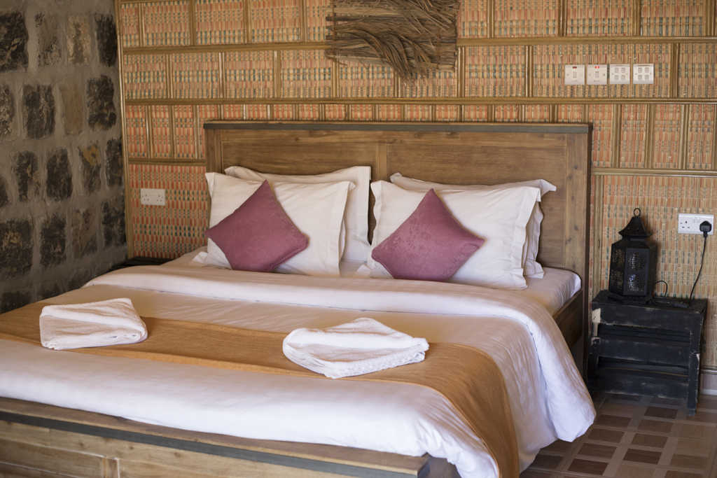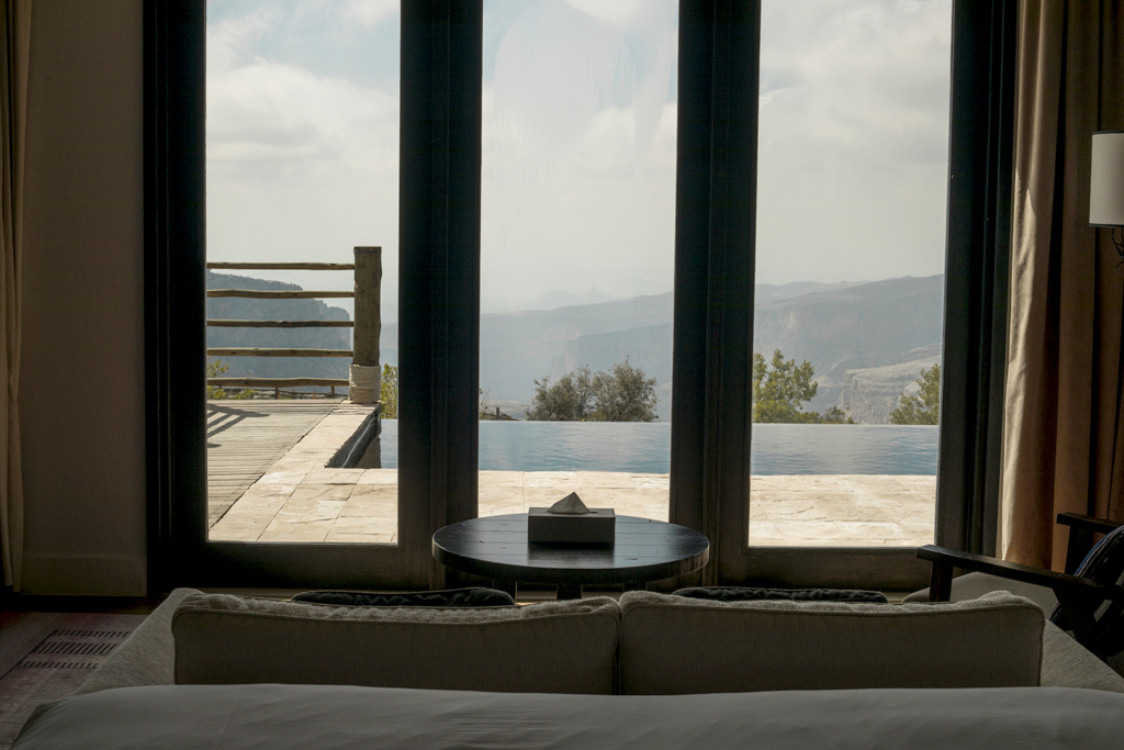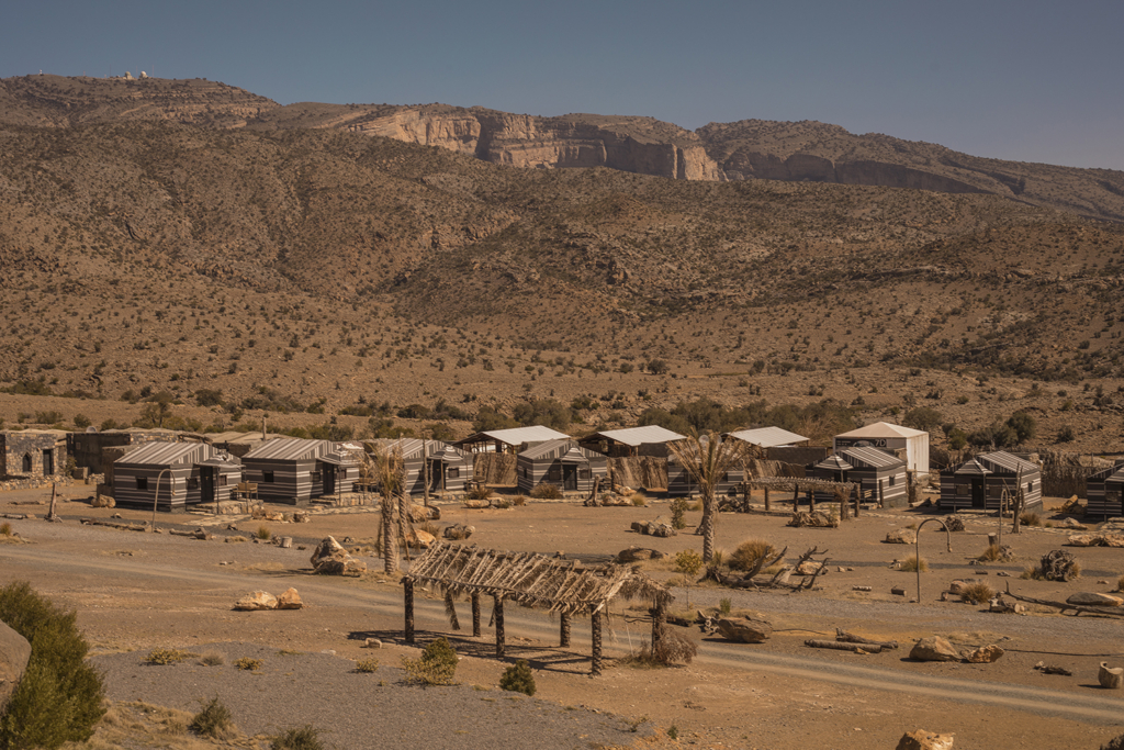 Ahí te podes quedar a dormir en carpa (en Omán es legal acampar en casi cualquier lugar, y hay mucha gente que lo hace, ¡por lo que también es muy seguro!), o como hicimos nosotros, hospedarte en el Sama Resorts, una cadena que se encuentra en todos los puntos claves de turismo de Omán, lo que está buenísimo. Es súper lindo y bien organizado, y en el caso de Sama Heights Resort en Jabel Shams queda prácticamente al lado de la entrada a la trilla del cañón. El alojamiento incluye el desayuno y la cena, y la comida del hotel que es tipo Buffet nos encantó. Las habitaciones están bien ambientadas, son de piedra y tienen aire acondicionado, y un balcón divino con posibilidad de prender un fuego afuera. Sale aprox 150 dólares la noche.