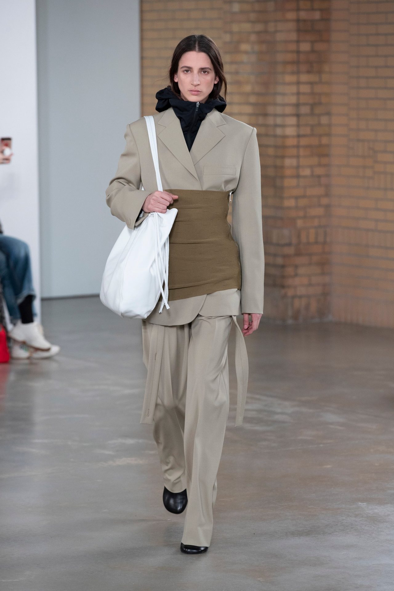 Los últimos dos años han sido extremos cuando se trata de pensar en la cintura, por ejemplo, ¿no parece que fue el regreso del corsé o los pantalones elástizados? Lázaro Hernández y Jack McCollough de Proenza Schouler han considerado durante mucho tiempo la cintura con siluetas de corsé, aunque esta temporada fueron por prendas de punto, y la cintura se vió con envolturas de modelado corporal sobre chaquetas y abrigos. Fue sorprendente y un recordatorio de que ceñirse en la cintura, incluso solo con un cinturón sobre su chaqueta, es una manera fácil de agregar interés a tu look.