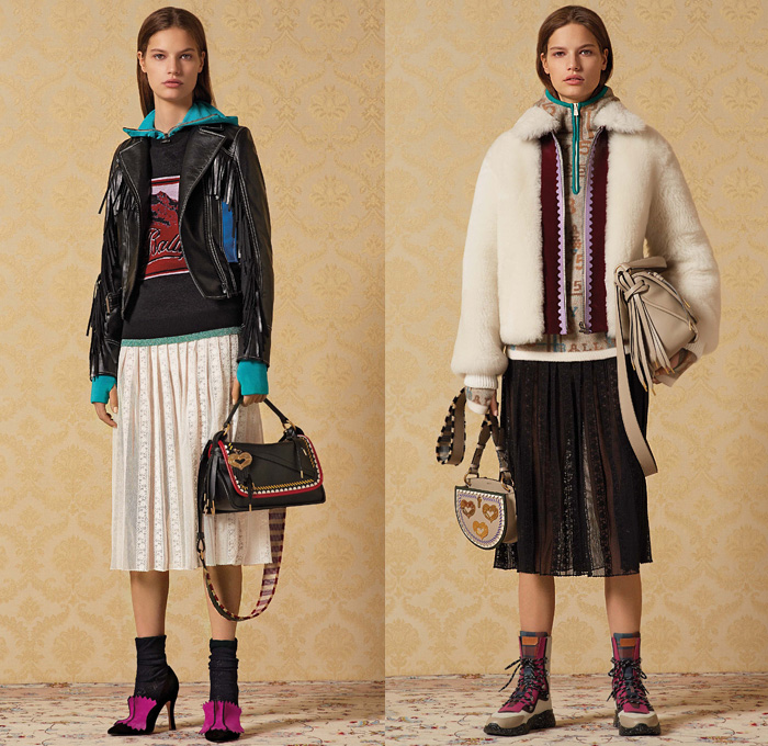 Toques trendy que van de la mano de lo alpino y del mundo del esquí, con tejidos en ochos y bordados artesanales. Junto con esta tendencia veremos el resurgimiento de lo local y lo hecho a mano, o al menos que parezca que lo es. Puntadas que se ven y parecen realizadas al azar, flecos y guardas folk, mezcla con plisados y brillos, clásico y conservador puede ser, ¿aburrido? Para nada.