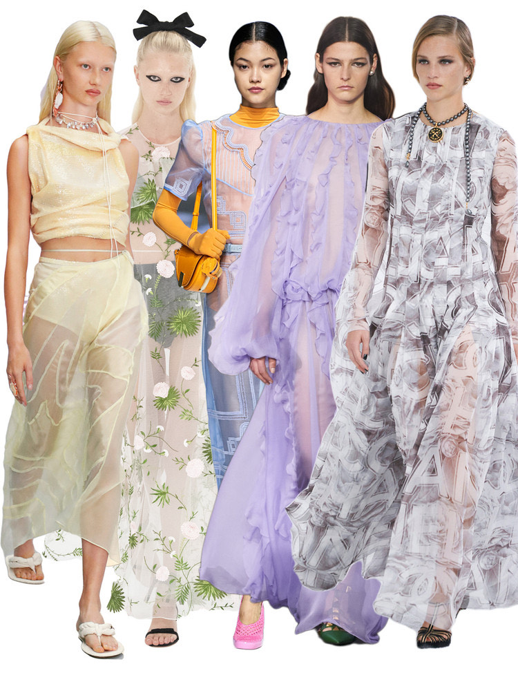 El top transparente: otro que está presente hace ya un tiempo. Fuertemente inspirado en los 2000, este tipo de tops se lleva todas las miradas y nos permite jugar y combinar con otros crop tops logrando looks muy jugados.